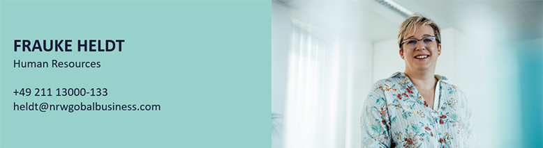 Wir möchten den Bewerbungsprozess so einfach wie möglich für Sie halten: Fokussieren Sie sich auf einen aussagekräftigen Lebenslauf, Zeugnisse und verzichten Sie auf ein Anschreiben. Sie können sich bis zum 14.11.2025 bewerben. Bei gleicher Eignung werden Bewerbungen von Menschen mit Behinderung bevorzugt. Bei Fragen steht Ihnen Frau Heldt gerne zur Verfügung. Bewerbungen bitte an: bewerbungen@nrwglobalbusiness.com.